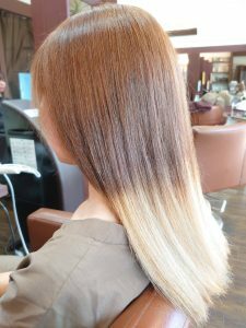 なので、まずは根元の伸びた分をカラー剤で明るく毛先をブリーチでいけるとこまで抜きました♪