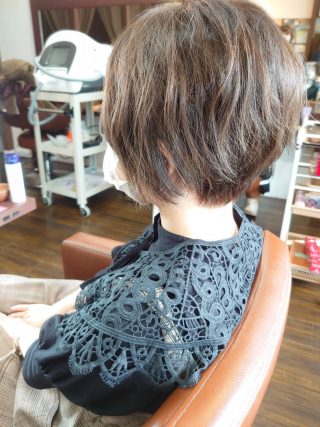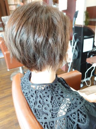 カットはショートボブベースでえりあし周りが特にスッキリとなる様に切っています!